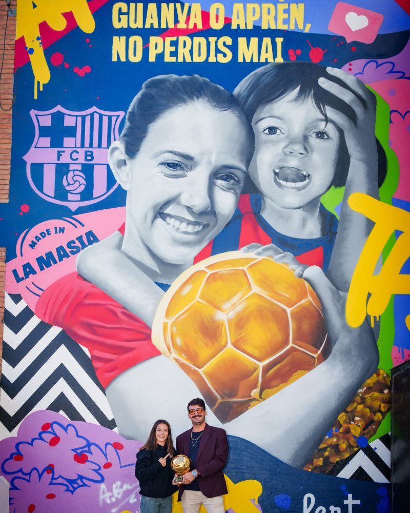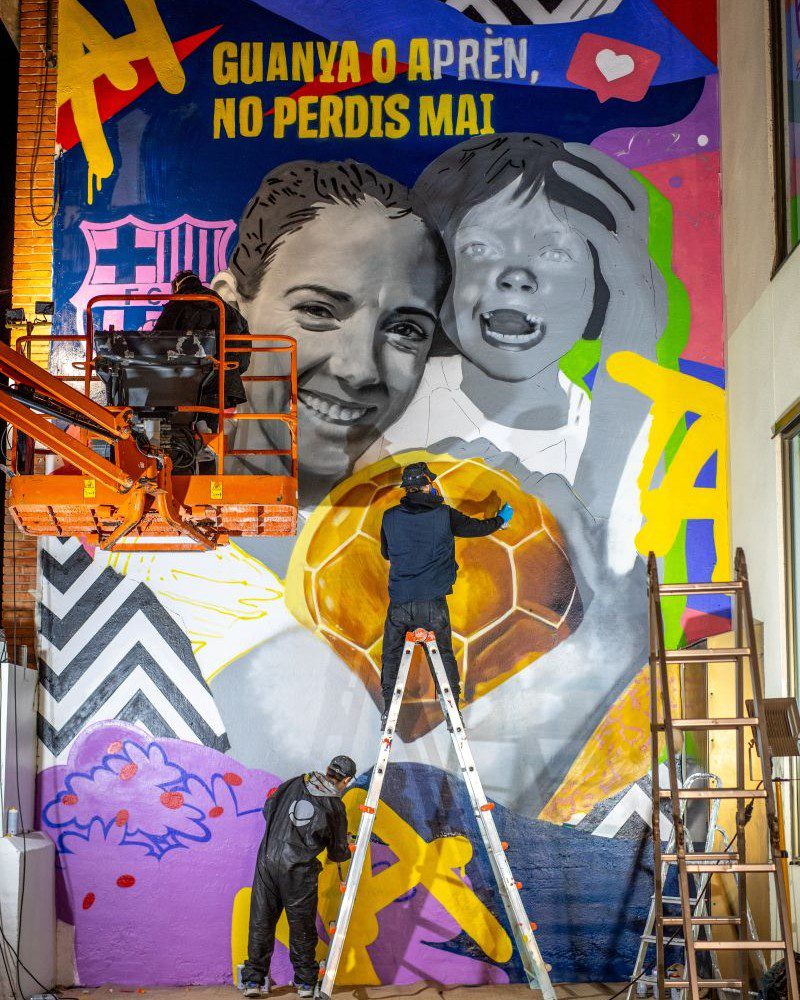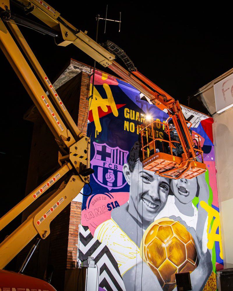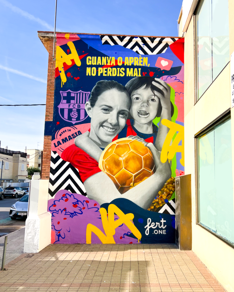 Encargado por el FC Barcelona para celebrar la victoria del Balón de Oro de Aitana Bonmatí, este mural fue creado en una sola noche por mi equipo y por mí como un homenaje sorpresa en su localidad natal. La obra recoge sus logros deportivos y se convierte en un símbolo de inspiración para jóvenes deportistas, destacando valores como la resiliencia, la determinación y la excelencia.