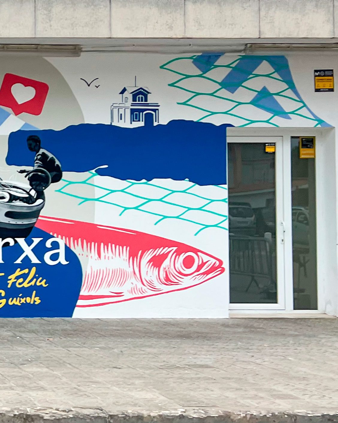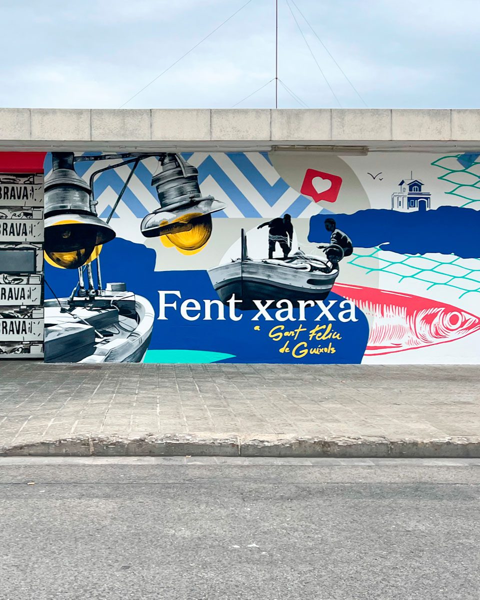 En el marco del proyecto Art i Pesca, mi equipo y yo realizamos un mural en homenaje al patrimonio pesquero del municipio. En colaboración con la Cofradía de Pescadores, la obra pone en valor la pesca sostenible y la conservación marina a través de colores vibrantes y elementos simbólicos. La pieza celebra la identidad marítima del pueblo y busca inspirar a las futuras generaciones.